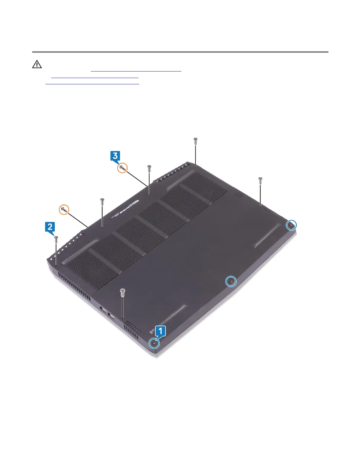 2 Remove the six screws (M2.5x10) that secure the base cover to the palm-rest assembly.