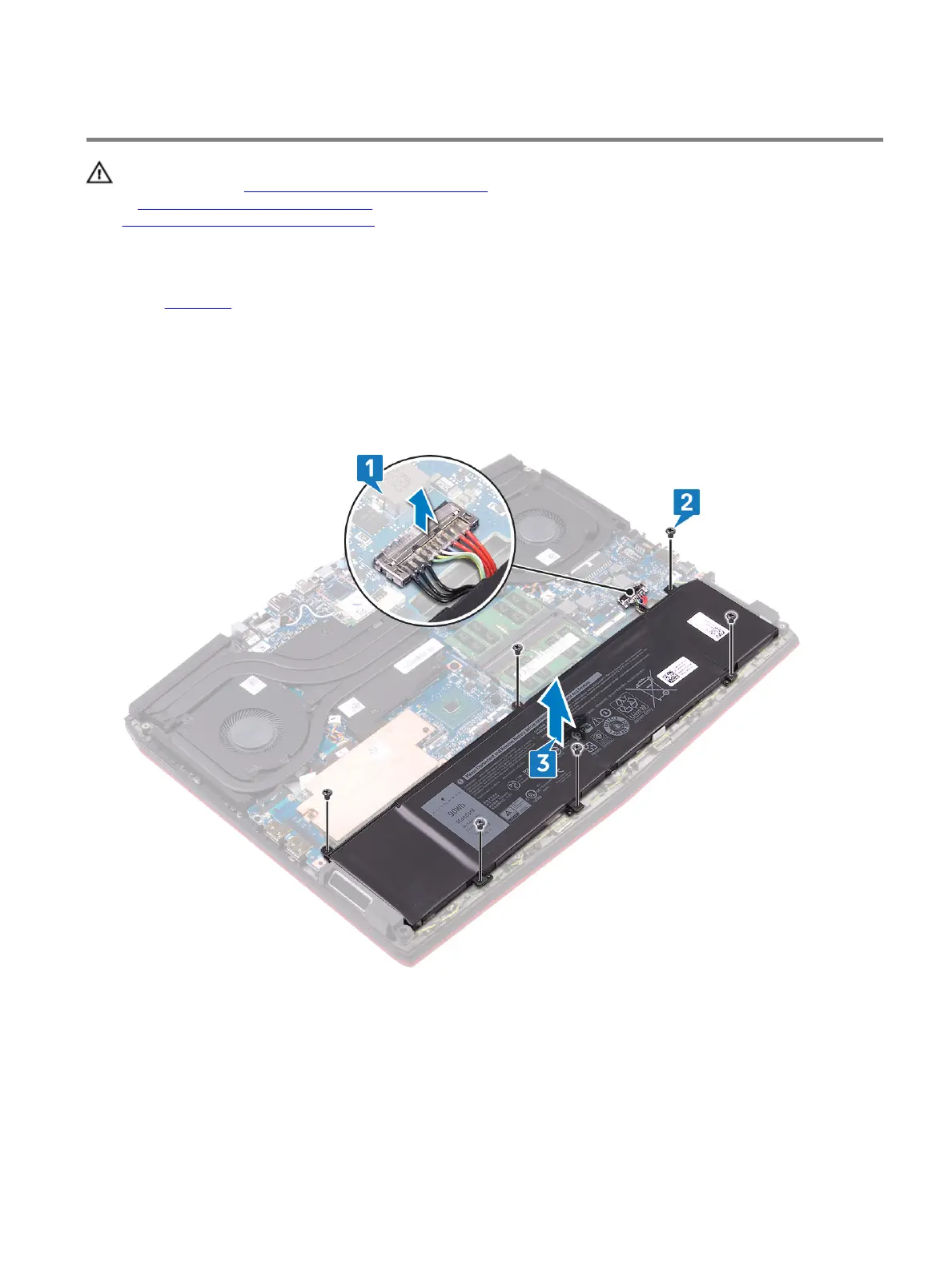 2 Remove the six screws (M2x5) that secure the battery to the palm-rest assembly.