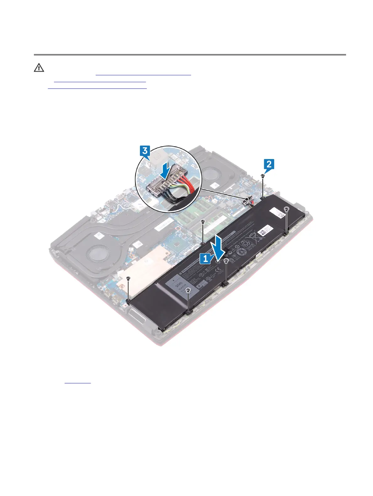 2 Replace the six screws (M2x5) that secure the battery to the palm-rest assembly.