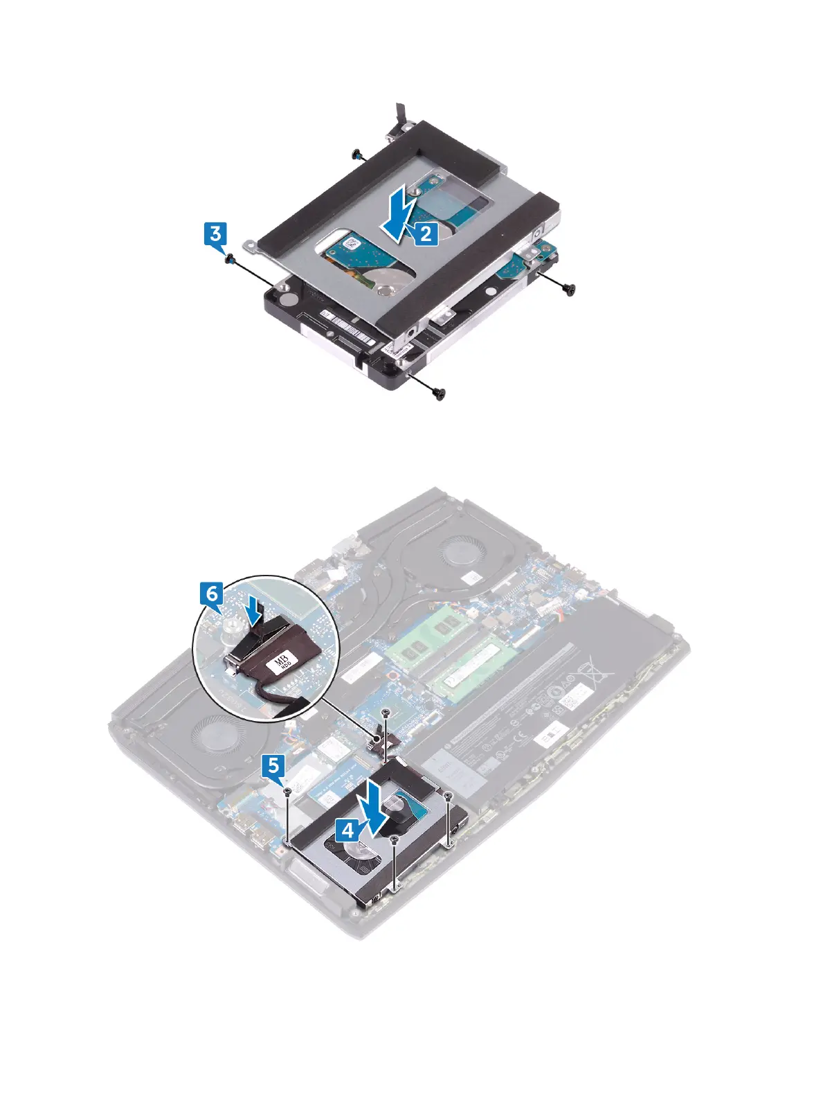 5 Replace the four screws (M2x5) that secure the hard-drive assembly to the palm-rest assembly.