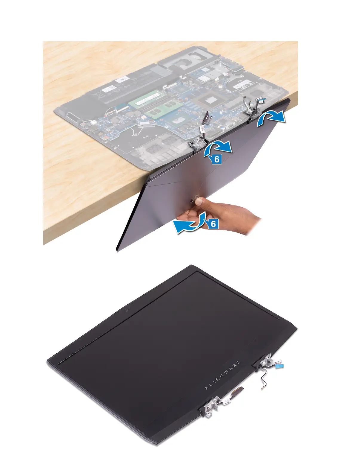 6 Rotate the display assembly inward and lift up and away from the palm-rest assembly.