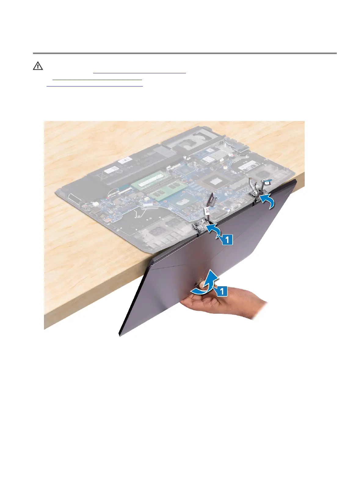 1 Open the hinges to 90 degree and place the display assembly on the palm-rest assembly by rotating outward.
