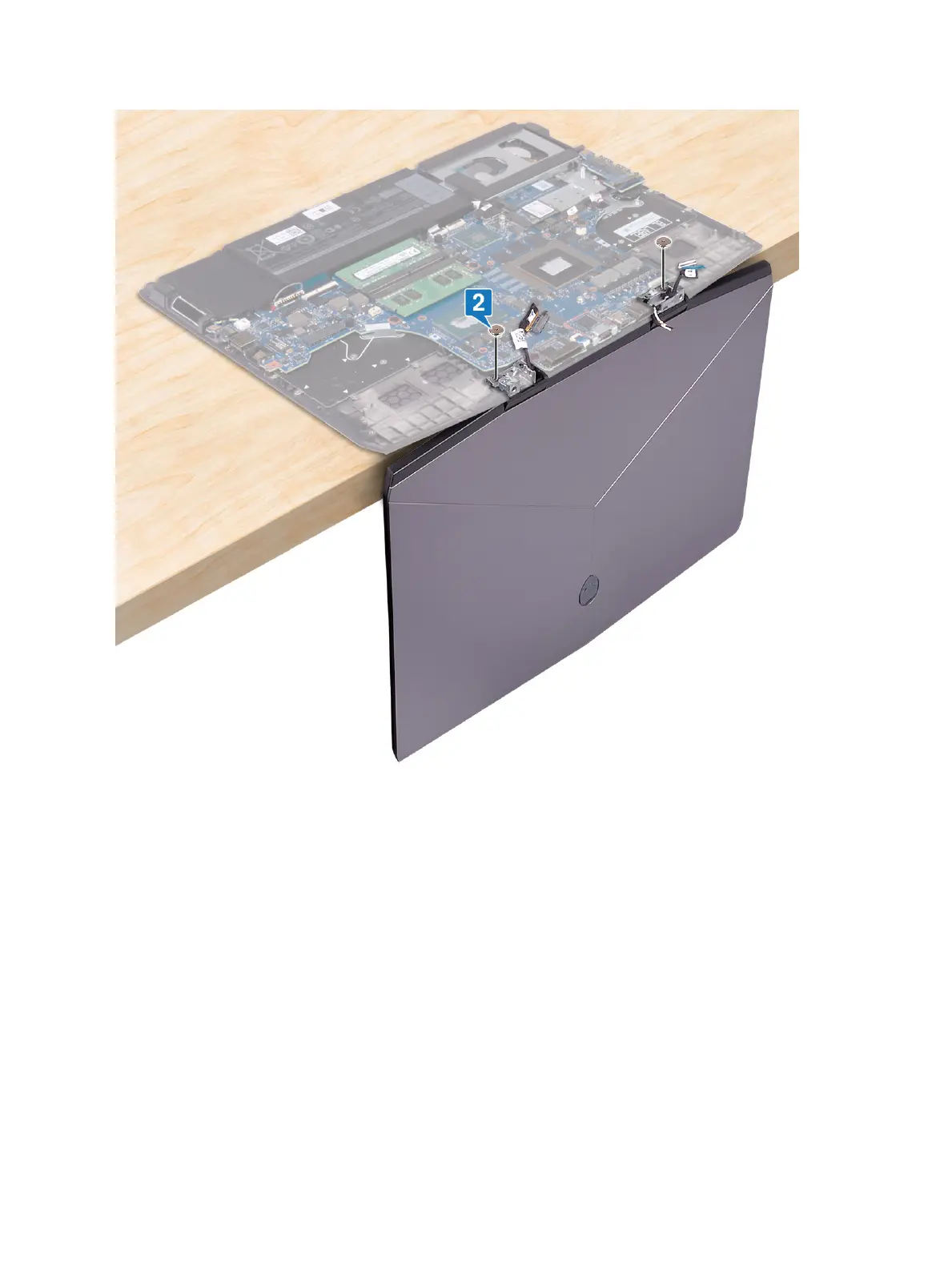 2 Replace the two screws (M2.5x2.5) that secures the hinges to the palm-rest assembly.