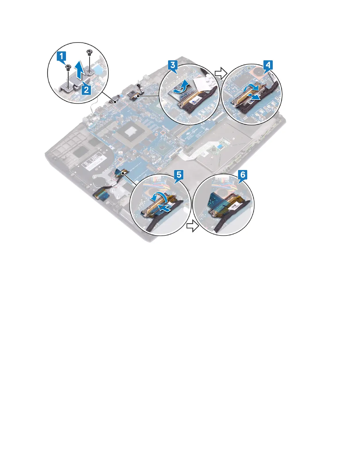 6 Open the latch and disconnect the keyboard cable from the system board.