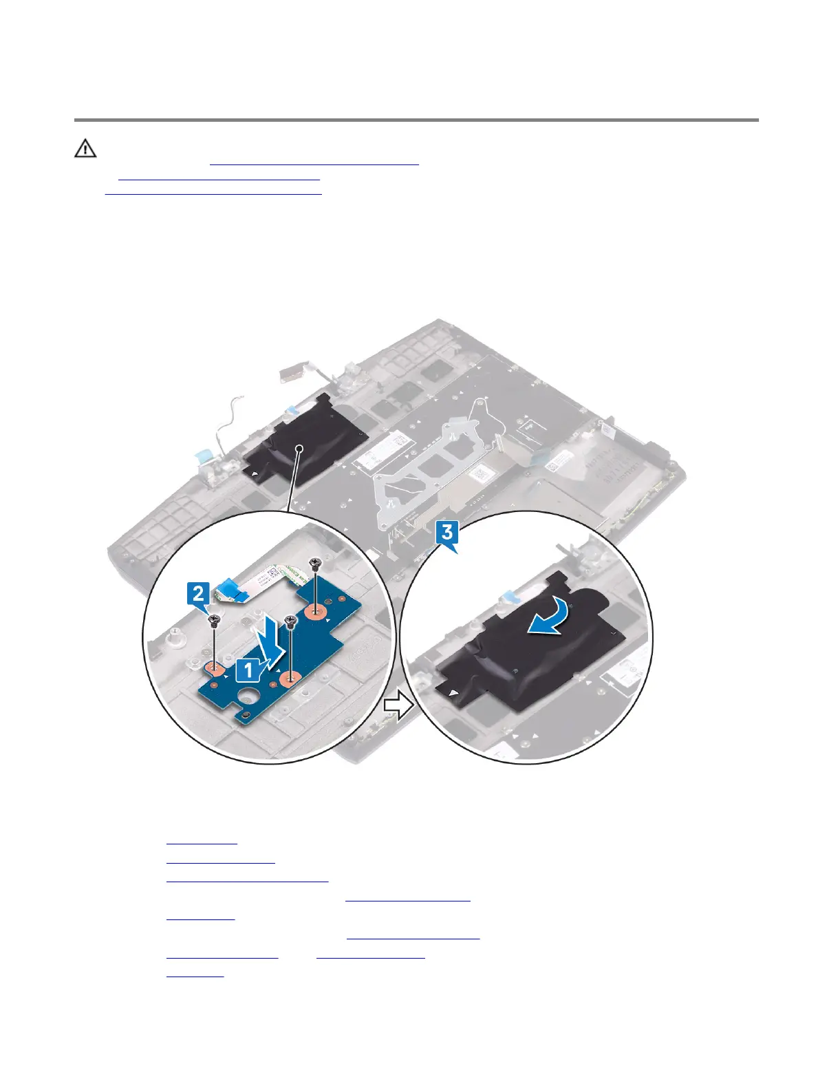 2 Replace the three screws (M2x3) that secure the power-button board to the palm-rest assembly.