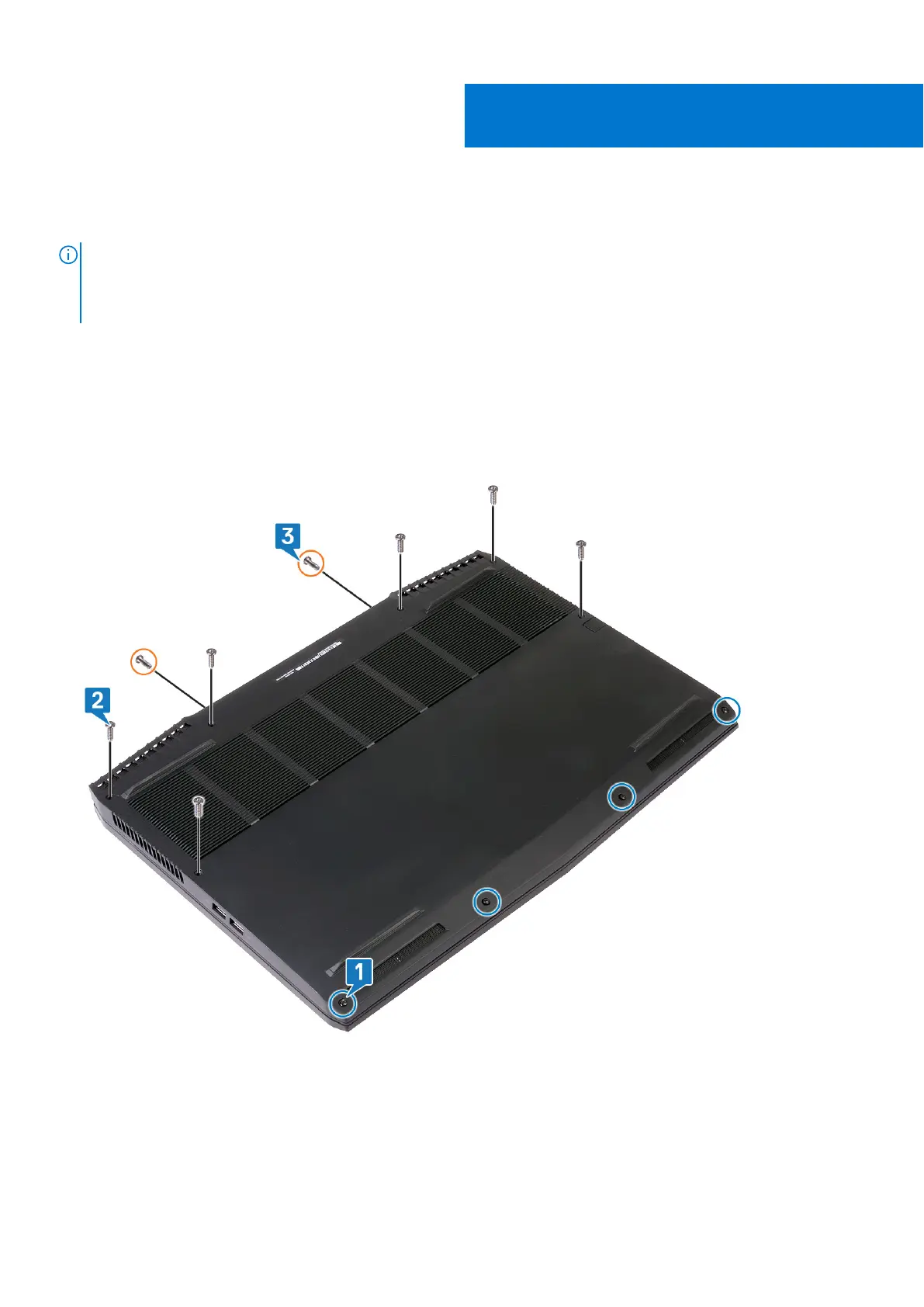 3. Remove the two screws (M2.5x9) from the back that secure the base cover to the palm-rest assembly.
