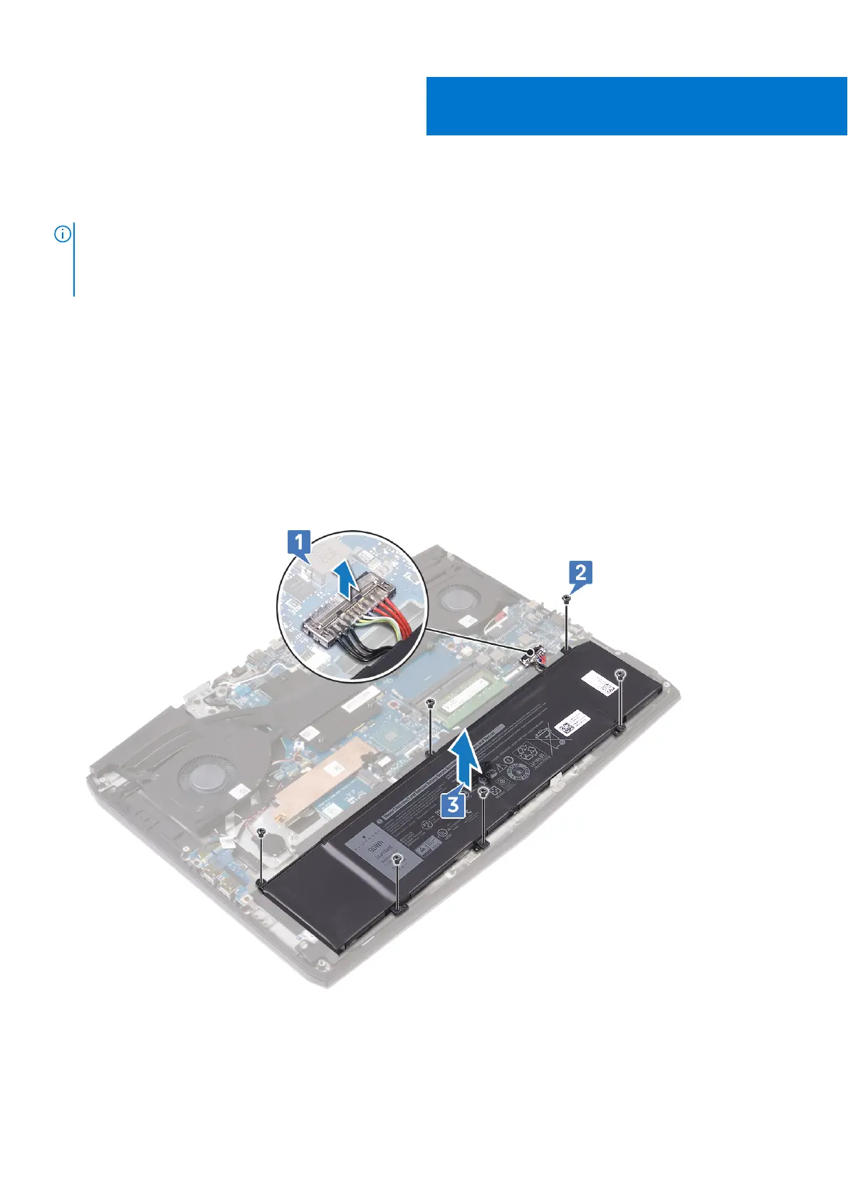 2. Remove the six screws (M2x5) that secure the battery to the palm-rest assembly.