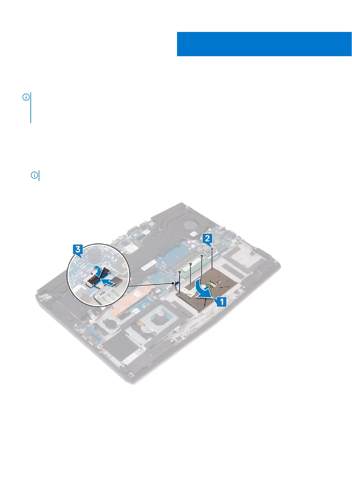2. Replace the four screws (M2x2.5) that secure the touchpad to the palm-rest assembly.