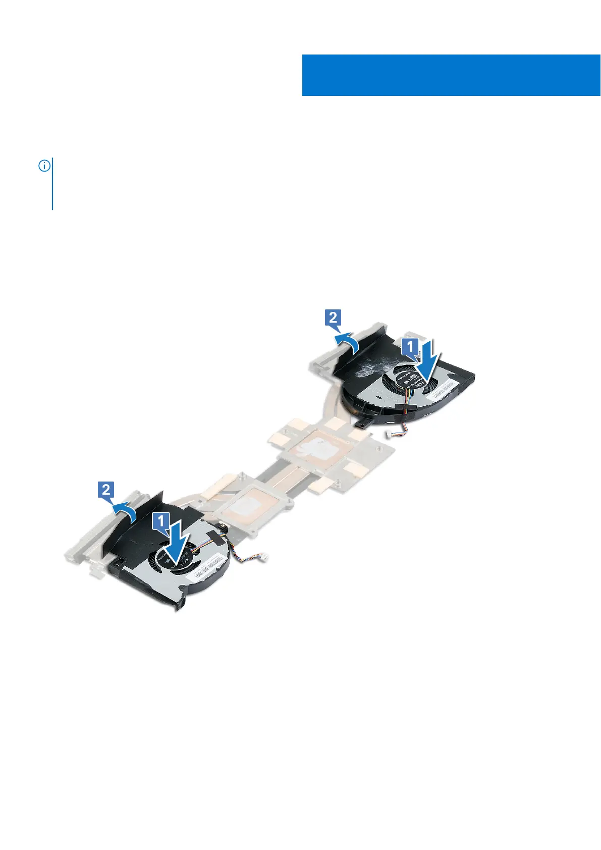 5. Replace the two screws (M2x3) that secure the fan to the heat sink.