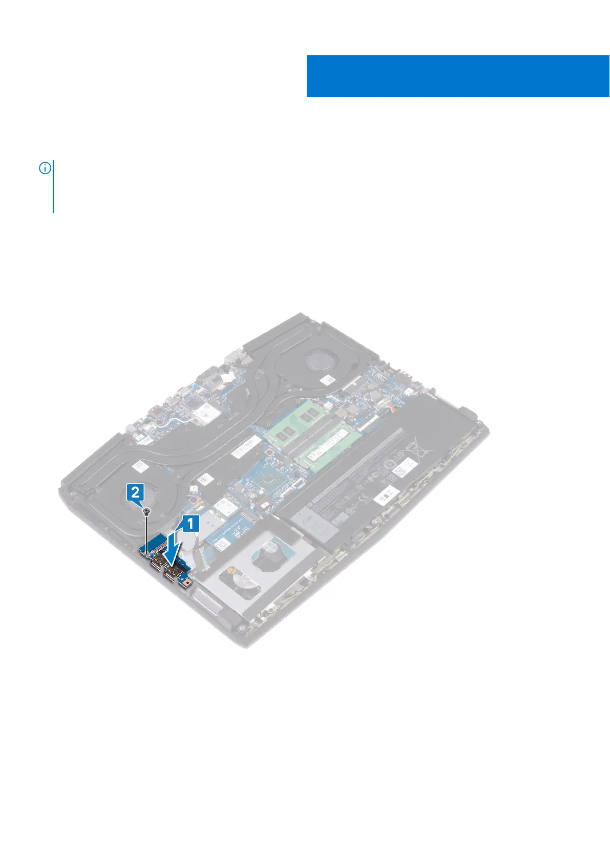 2. Align the screw hole on the I/O board with the screw hole on the palm-rest assembly and replace the screw (M2x5) that