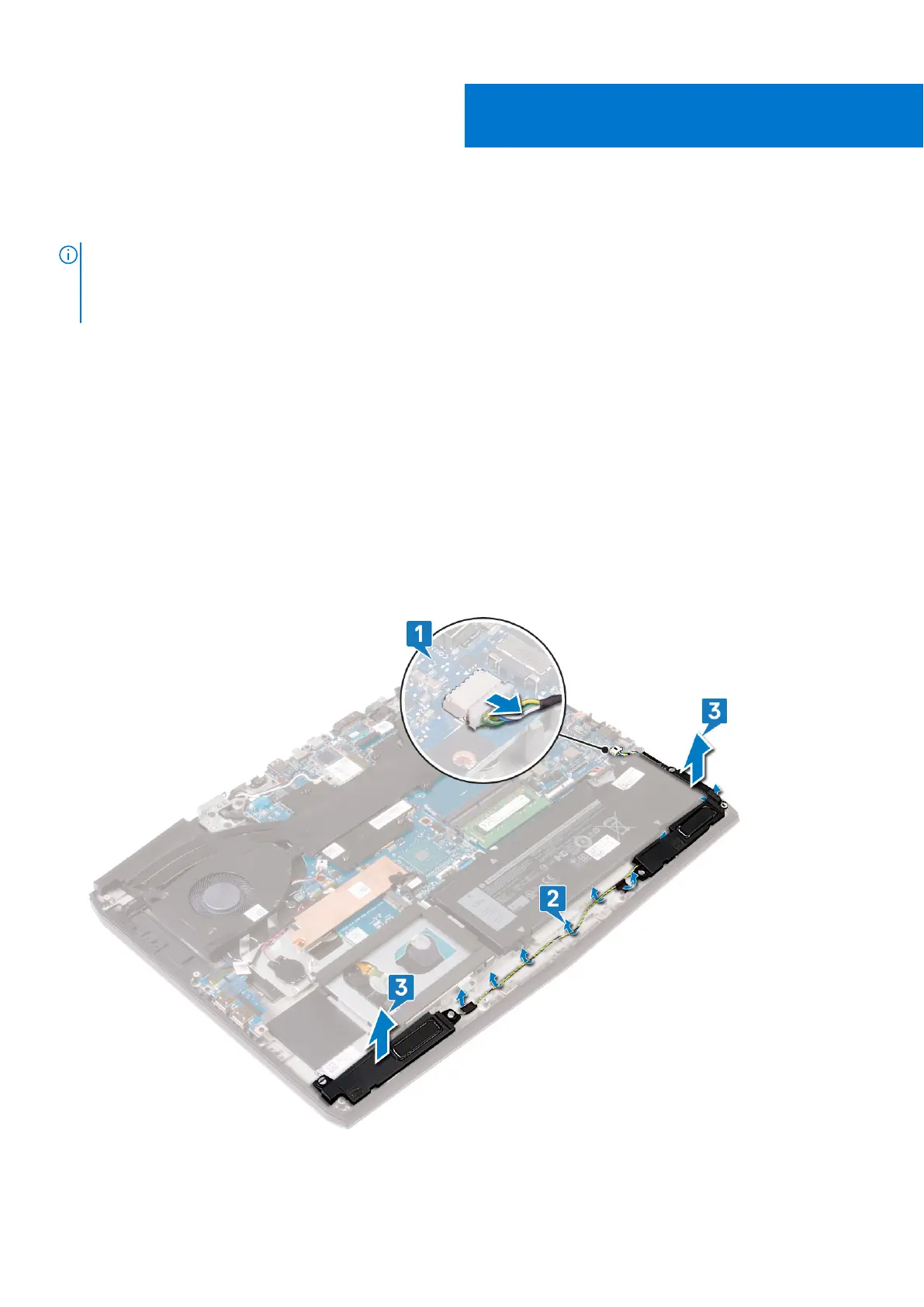 2. Note the speaker cable routing and remove the speaker cable from the routing guides on palm-rest assembly.