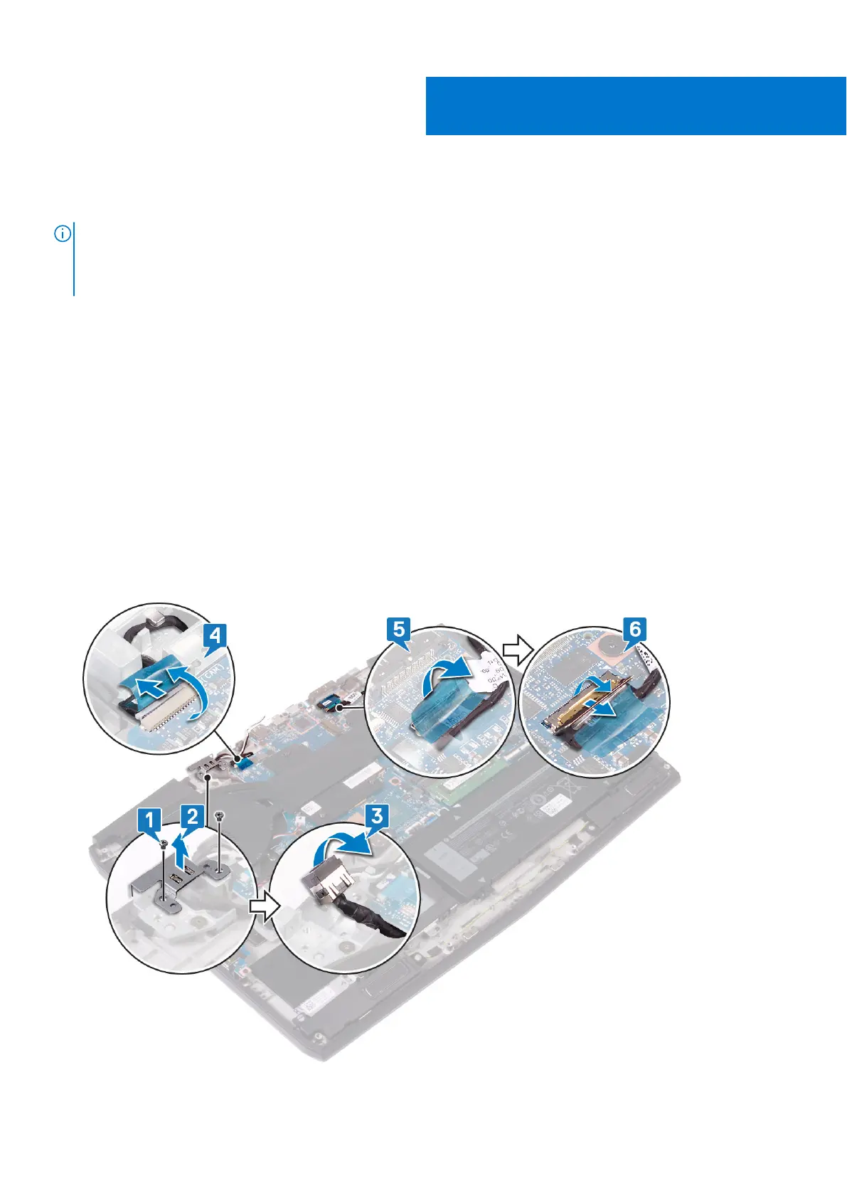 1. Remove the two screws (M2x3) that secure the power-adapter port bracket to the palm-rest assembly.