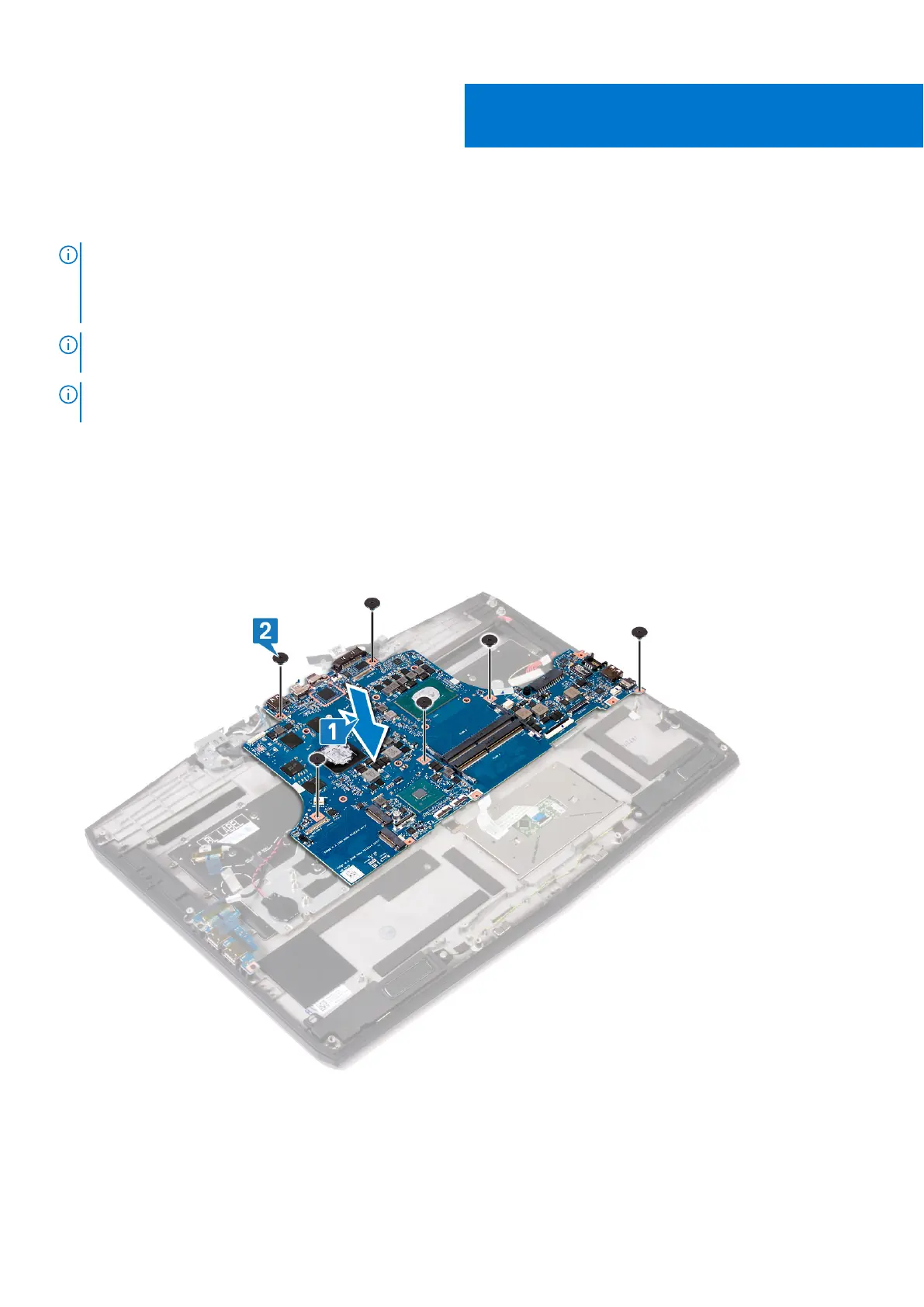 2. Replace the six screws (M2x3) that secure the system board to the palm-rest assembly.
