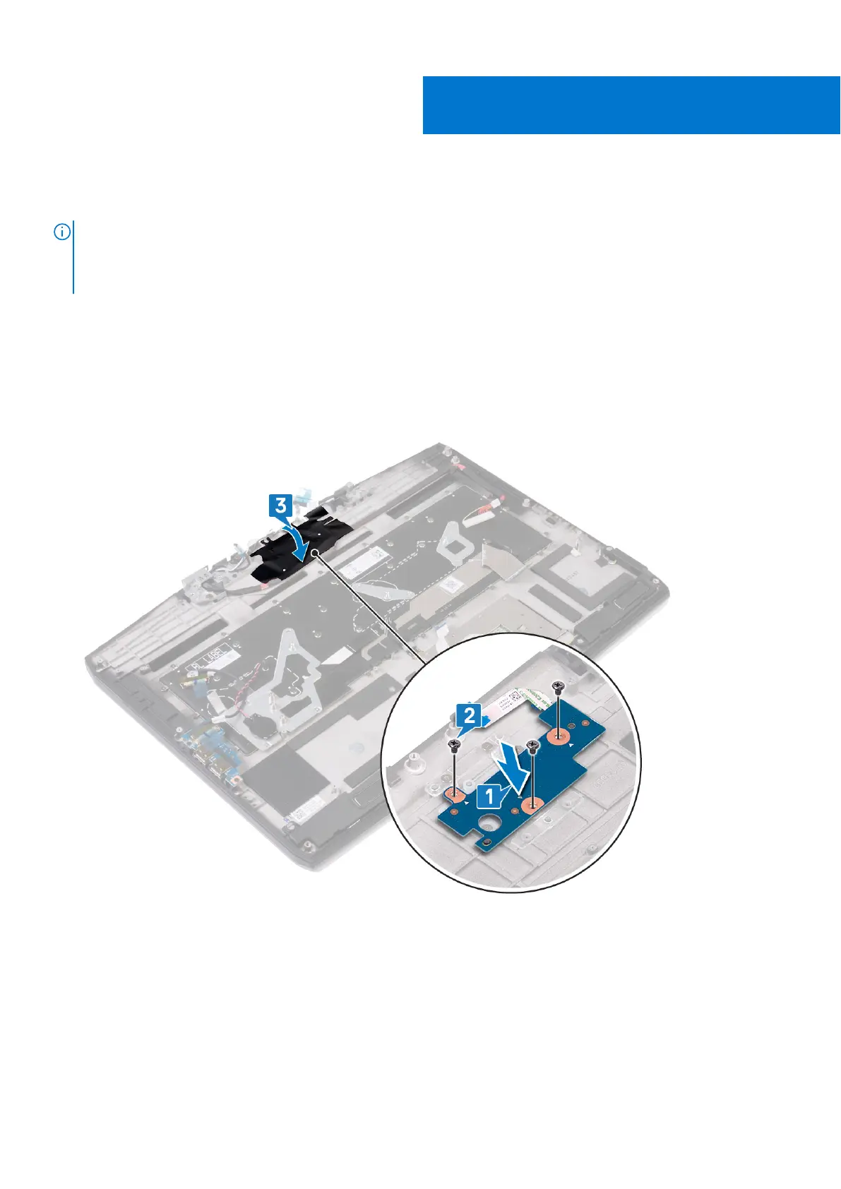 2. Replace the three screws (M2x3) that secure the power-button board to the palm-rest assembly.