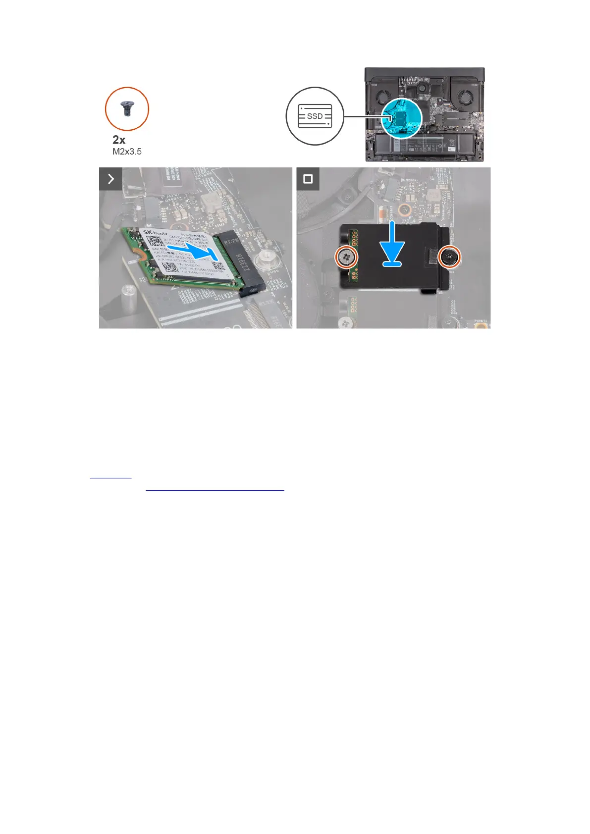5. Replace the two screws (M2x3.5) that secure the M.2 2230 thermal shield to the palm-rest and keyboard assembly.