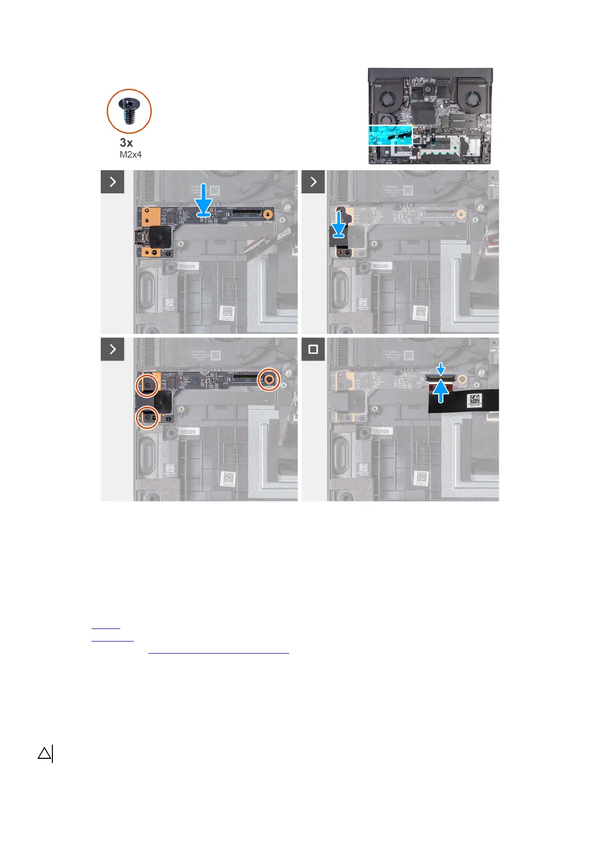 3. Replace the three screws (M2x4) that secure the USB Type-C board to the system-board assembly.