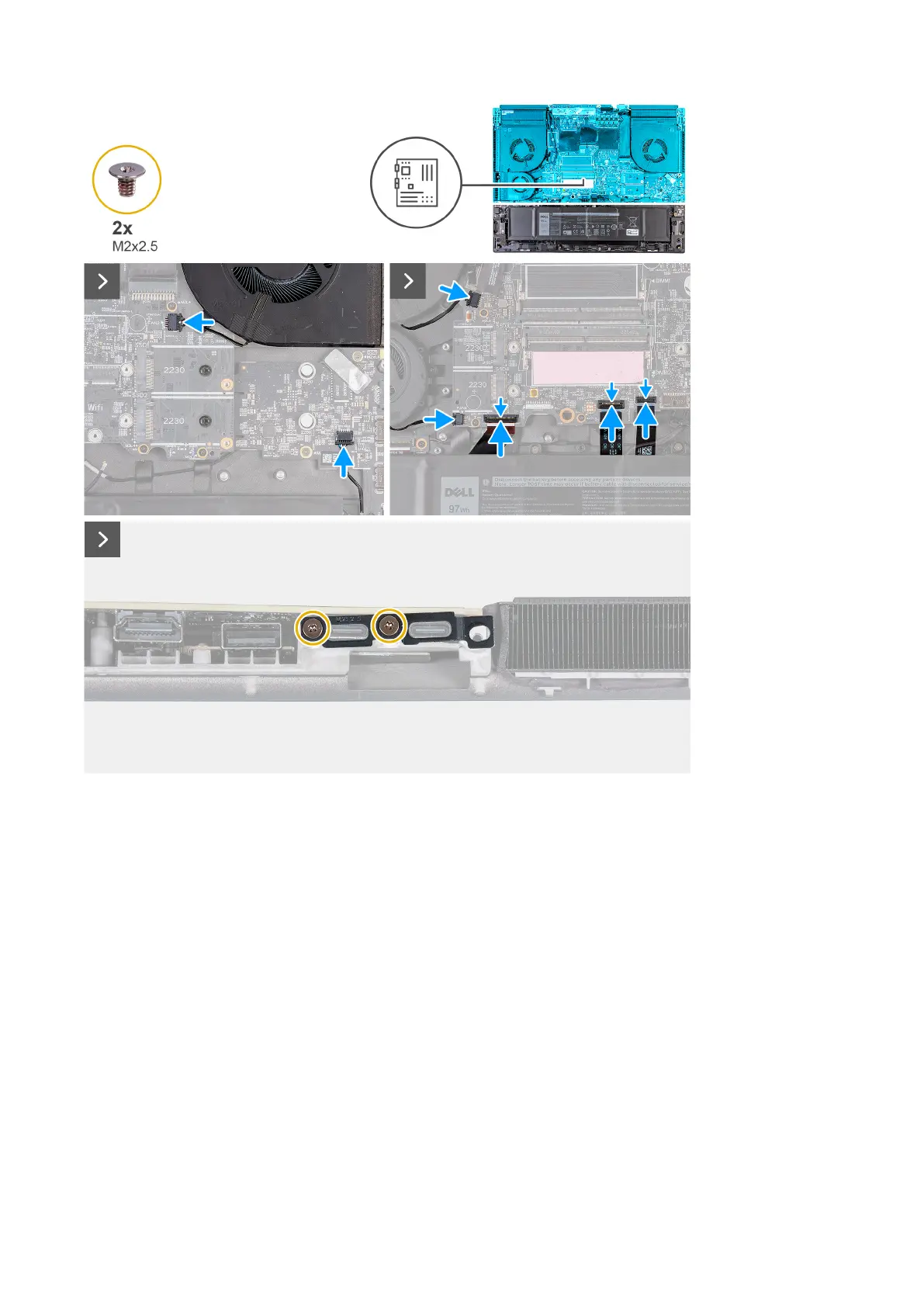 17. Replace the two screws (M2x2.5) that secure the Type-C bracket to the system board.