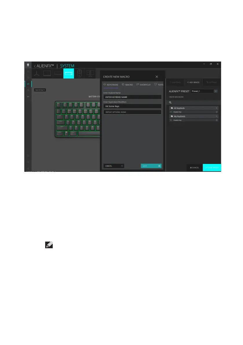 2. In the SYSTEM tab, select ALIENFX PRESET. Click KEY BINDS from the