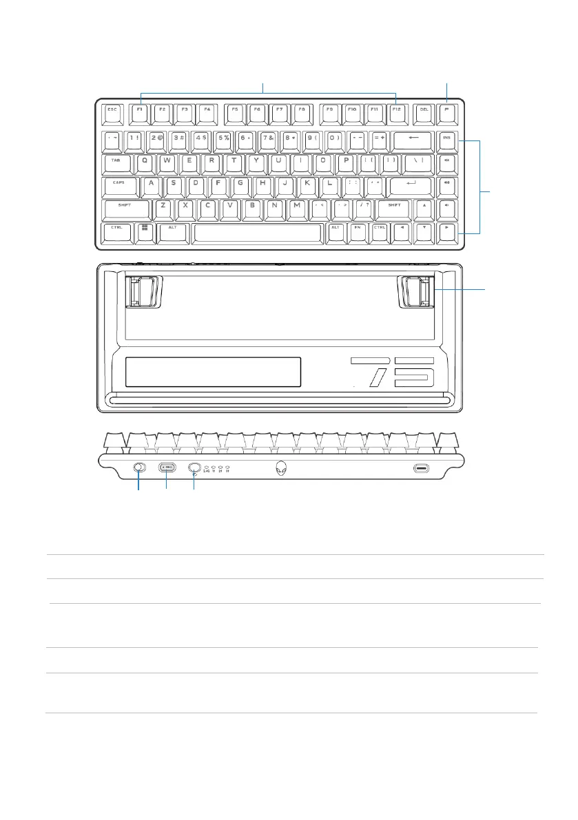 4 Power slider Turn on or turn off the keyboard.