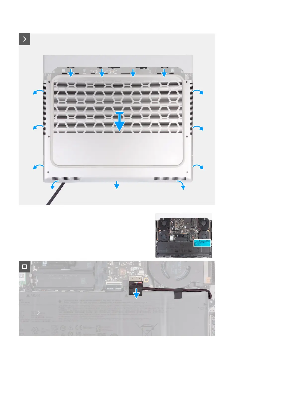 3. Using a plastic scribe, pry the base cover from the gap created after loosening the captive screws in the bottom left and continue