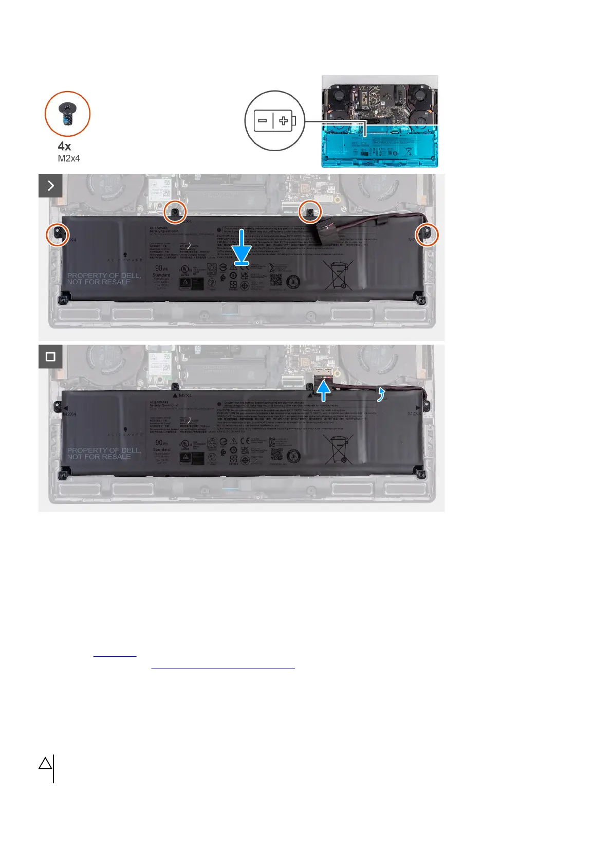 3. Replace the four screws (M2x4) that secure the battery to the palm-rest and keyboard assembly.
