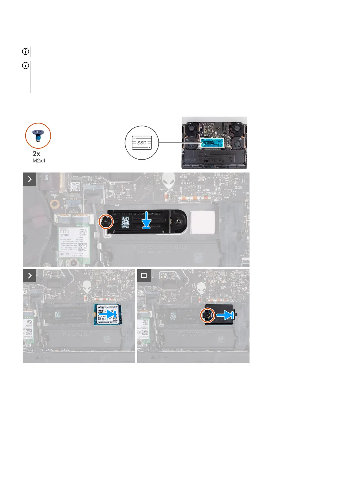 The following image(s) indicate the location of the M.2 2230 solid-state drive in SSD-2 and provides a visual representation of the