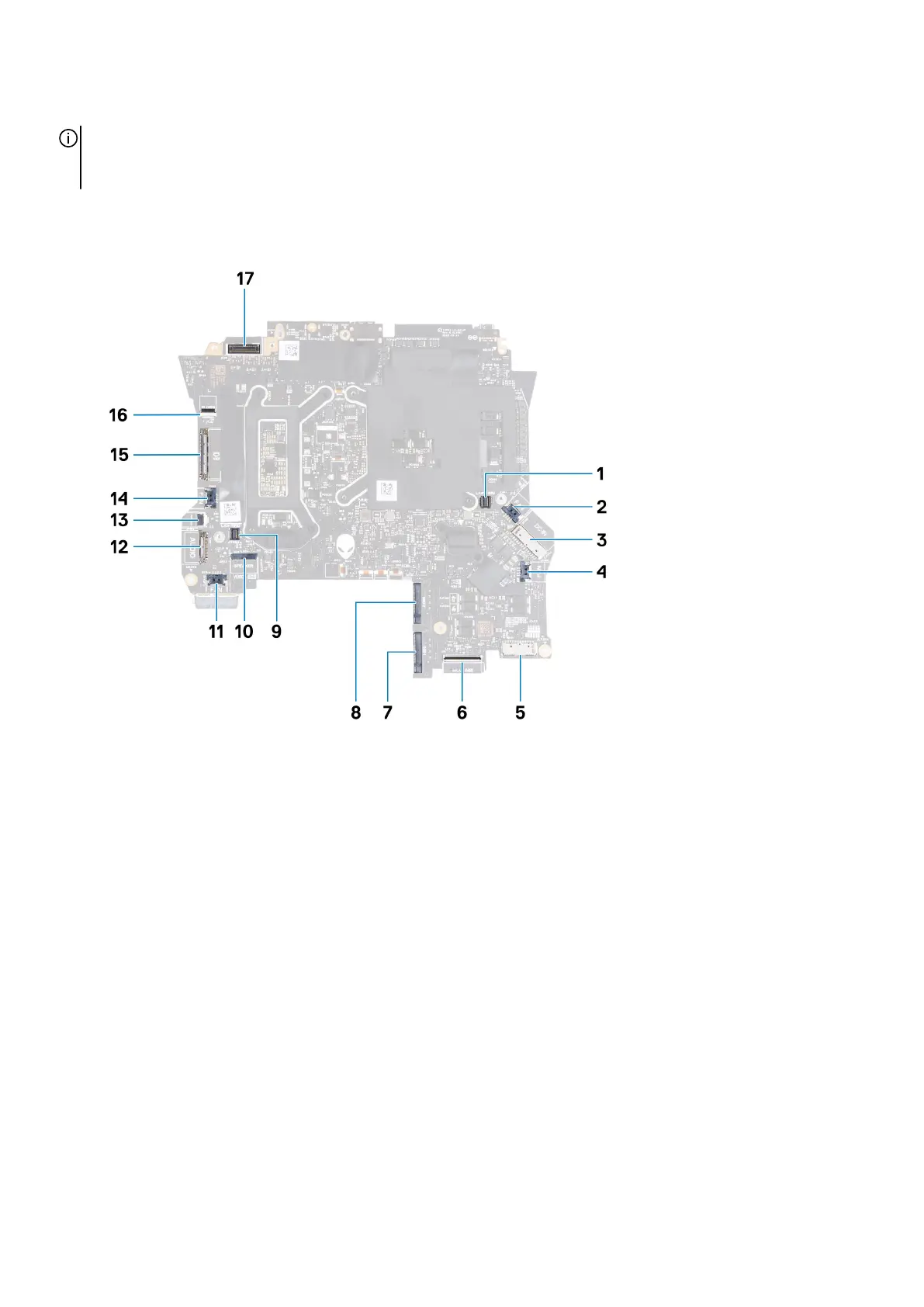 The following image indicates the connectors on your system board.