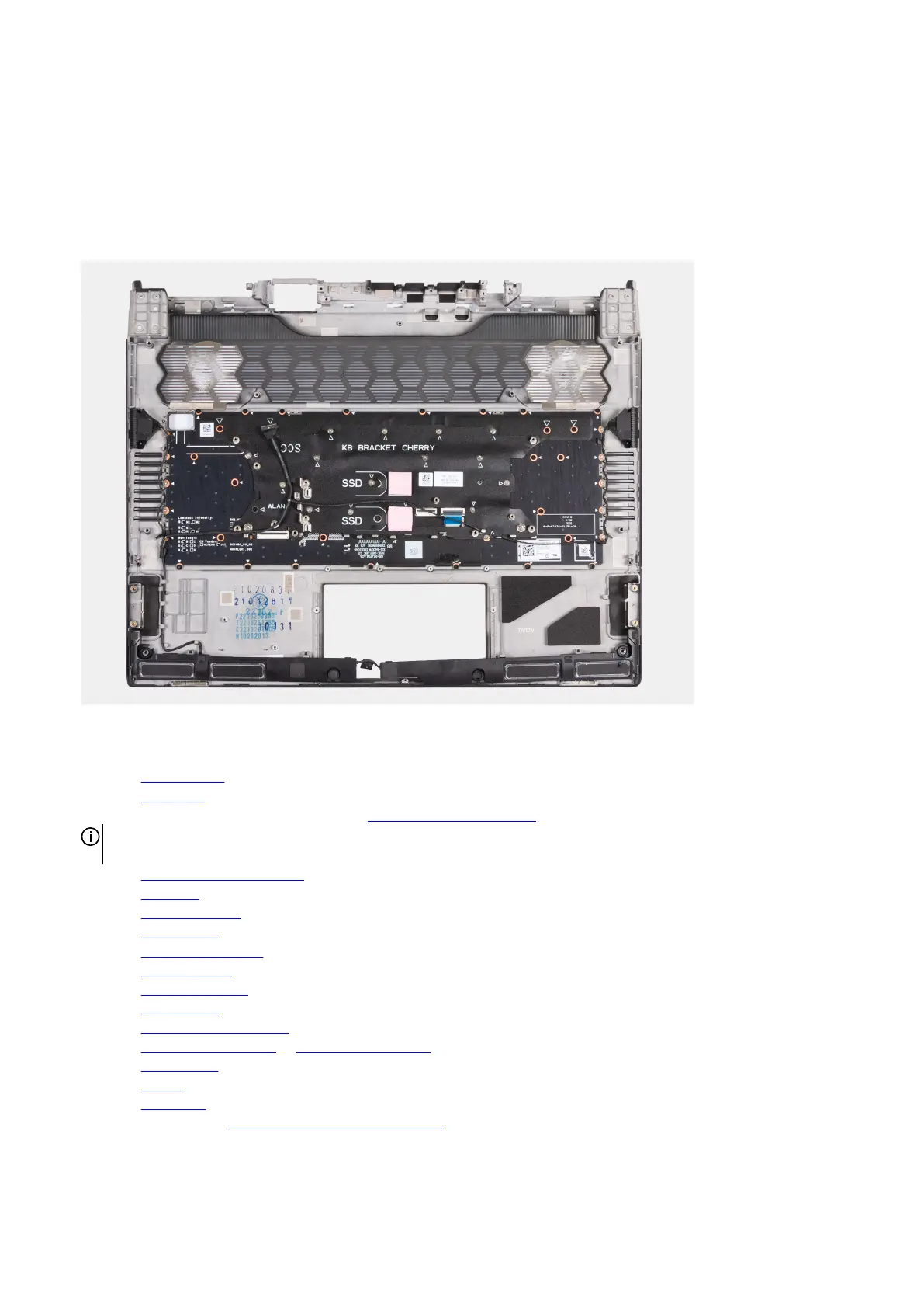 4. Route the speaker cable through the routing guides on the palm-rest and keyboard assembly as shown in the image.