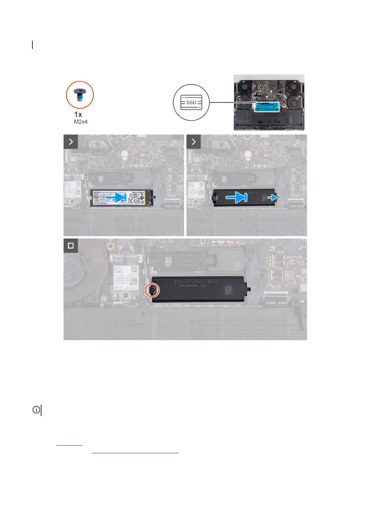 5. Replace the screw (M2x4) that secures the M.2 2280 SSD thermal shield to the SSD and palm-rest and keyboard assembly.