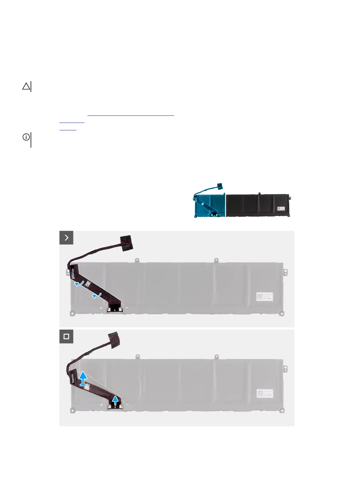 The following images indicate the location of the battery cable and provide a visual representation of the removal procedure.