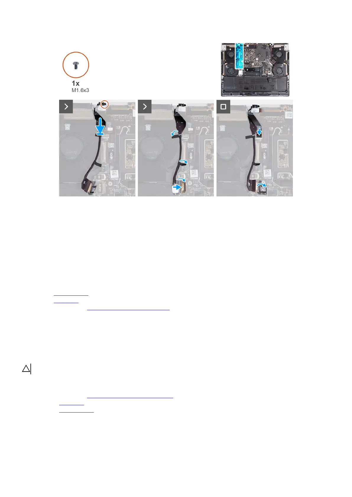 2. Replace the screw (M1.6x3) that secures the headset port to the palm-rest and keyboard assembly.