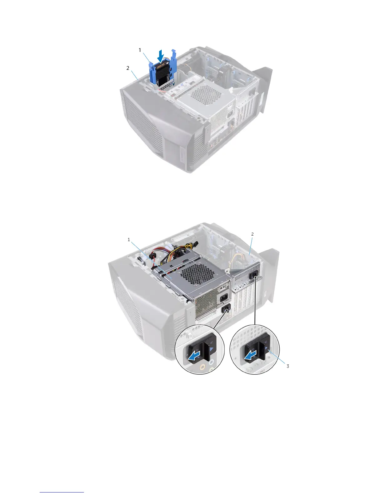 9 Slide the power-supply unit cage release latches towards the unlock position.
