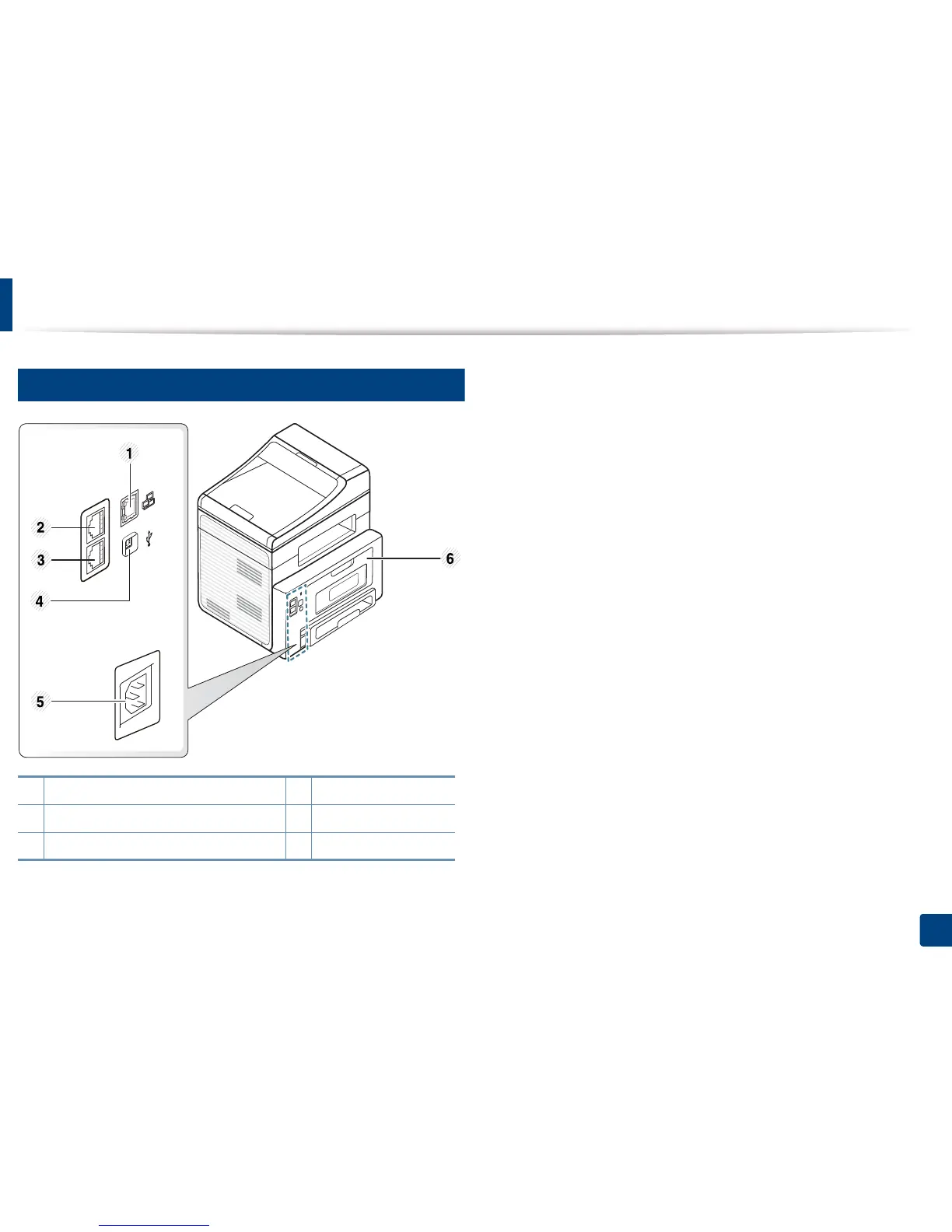 2 Extension telephone socket (EXT) 5 Power receptacle