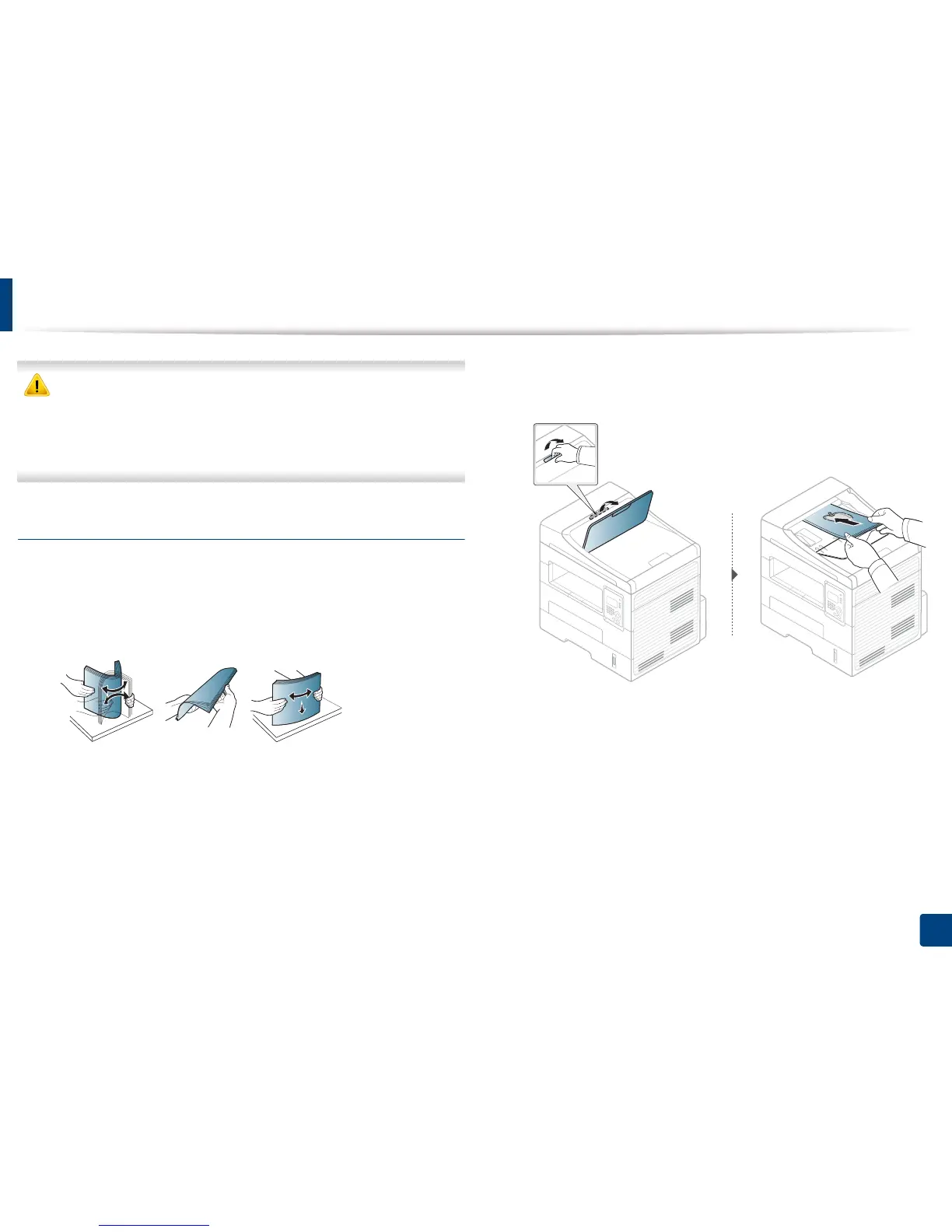 Flex or fan the edge of the paper stack to separate the pages before