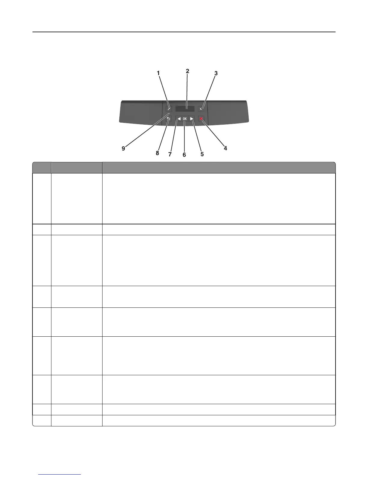 • Pressing the button while navigating within the menus returns the printer control panel