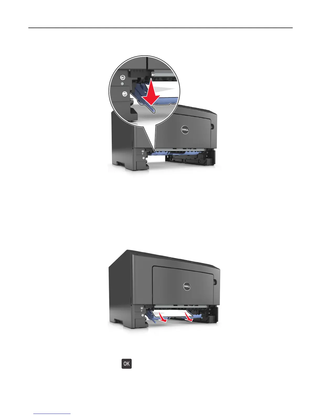Note: If the jammed paper is not visible in the duplex area, then open the rear door, and then gently remove the