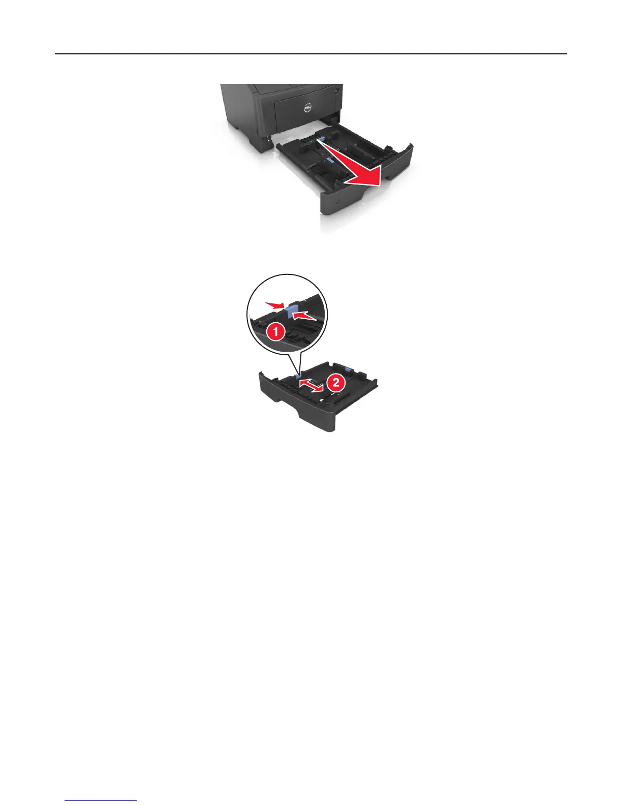 2 Squeeze, and then slide the width guide tab to the correct position for the size of the paper you are loading.