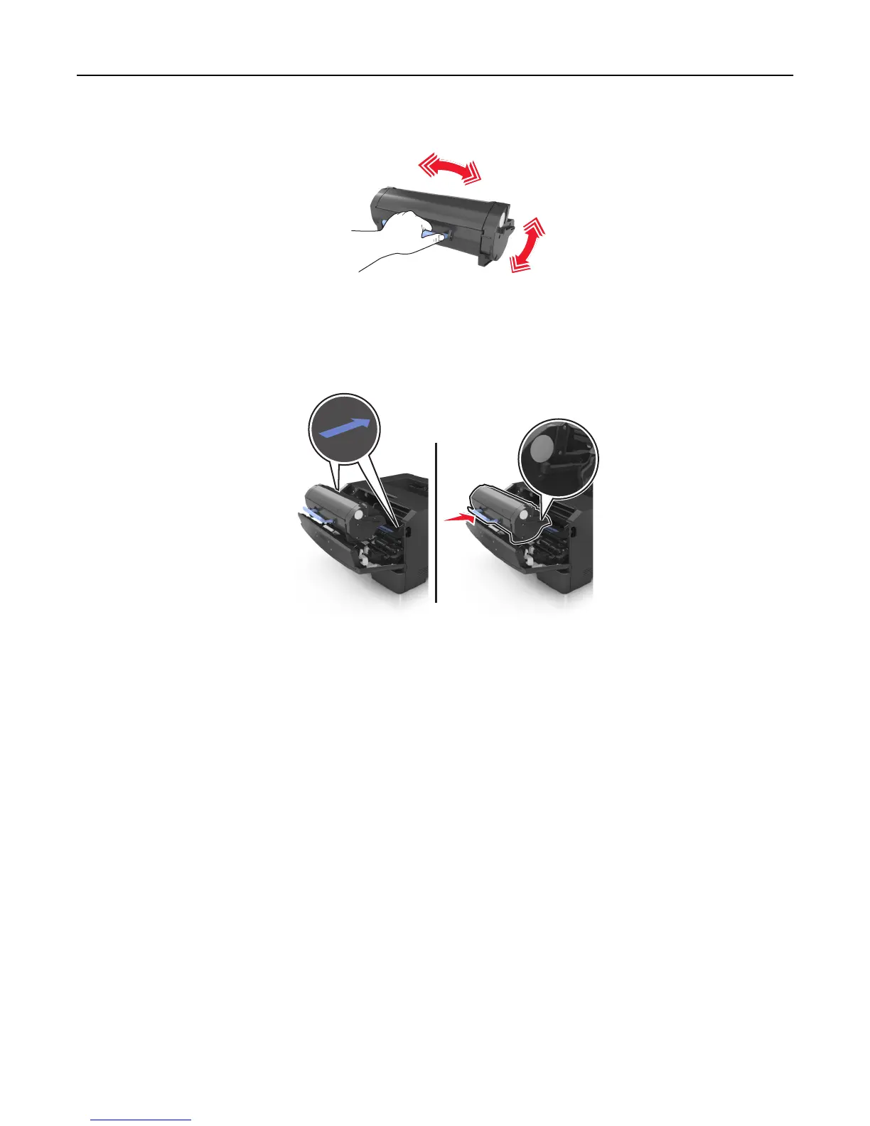 4 Shake the new cartridge to redistribute the toner.