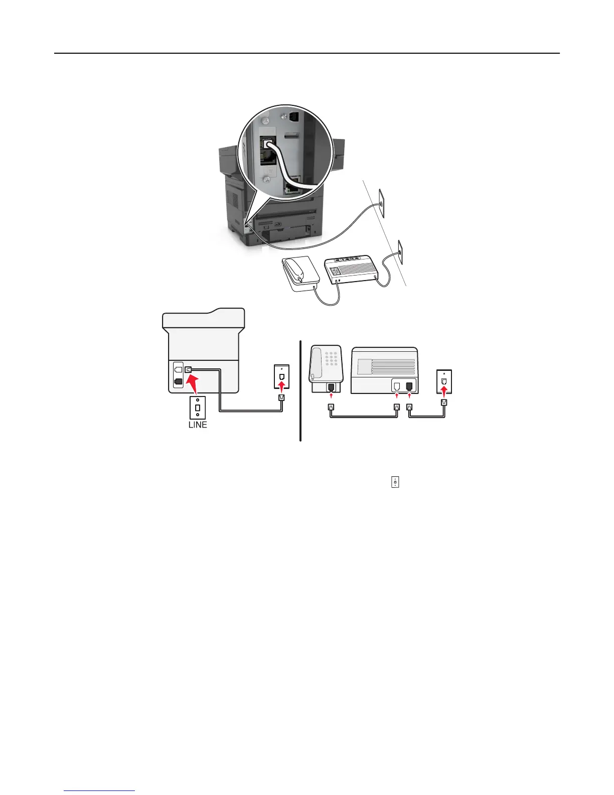 1 Connect one end of the telephone cable that came with the printer to the port of the printer.