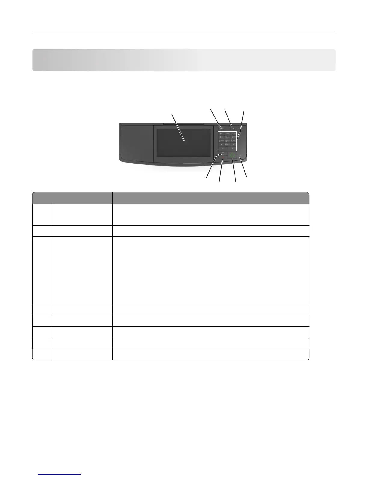 8 Clear All / Reset button Reset the default settings of a function, such as printing, copying, or e-mailing.