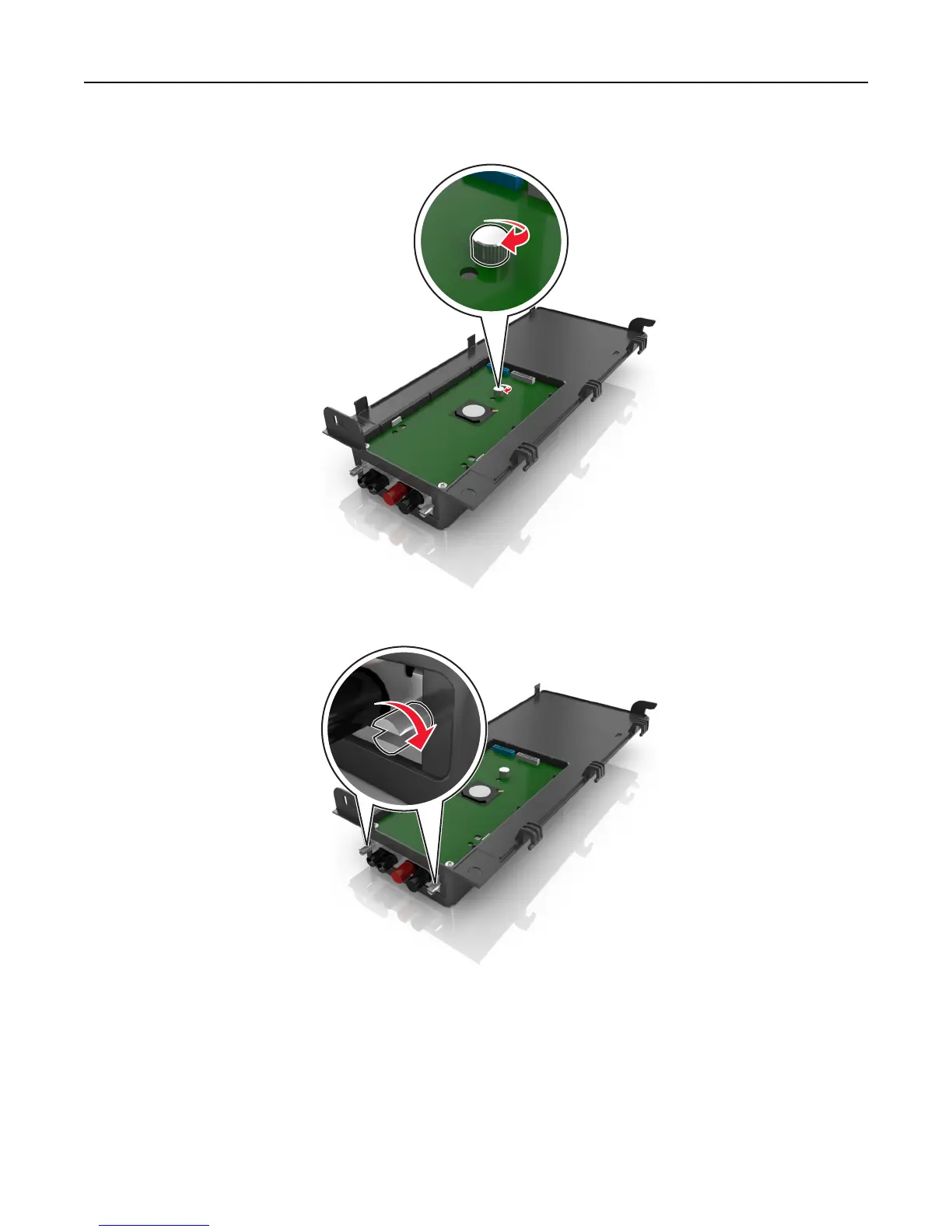 6 Secure the ISP solution to the plastic bracket using the long screw.
