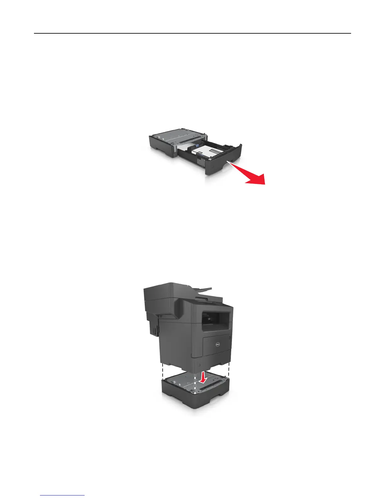 7 Align the printer with the tray, and then slowly lower the printer into place.
