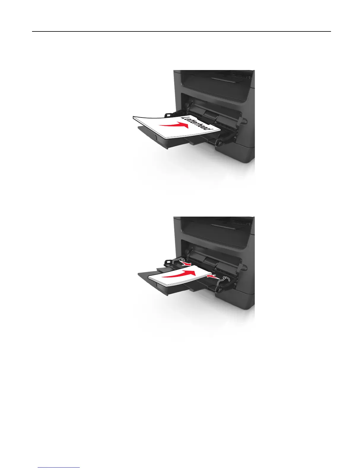 • Load letterhead faceup with the top edge entering the printer first. For two‑sided (duplex) printing, load