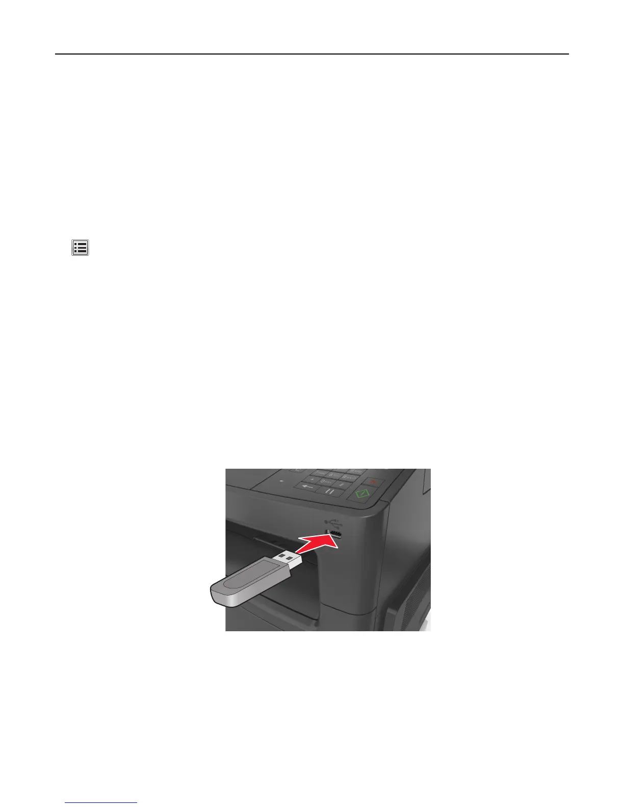• A flash drive icon appears on the printer home screen when a flash drive is inserted.