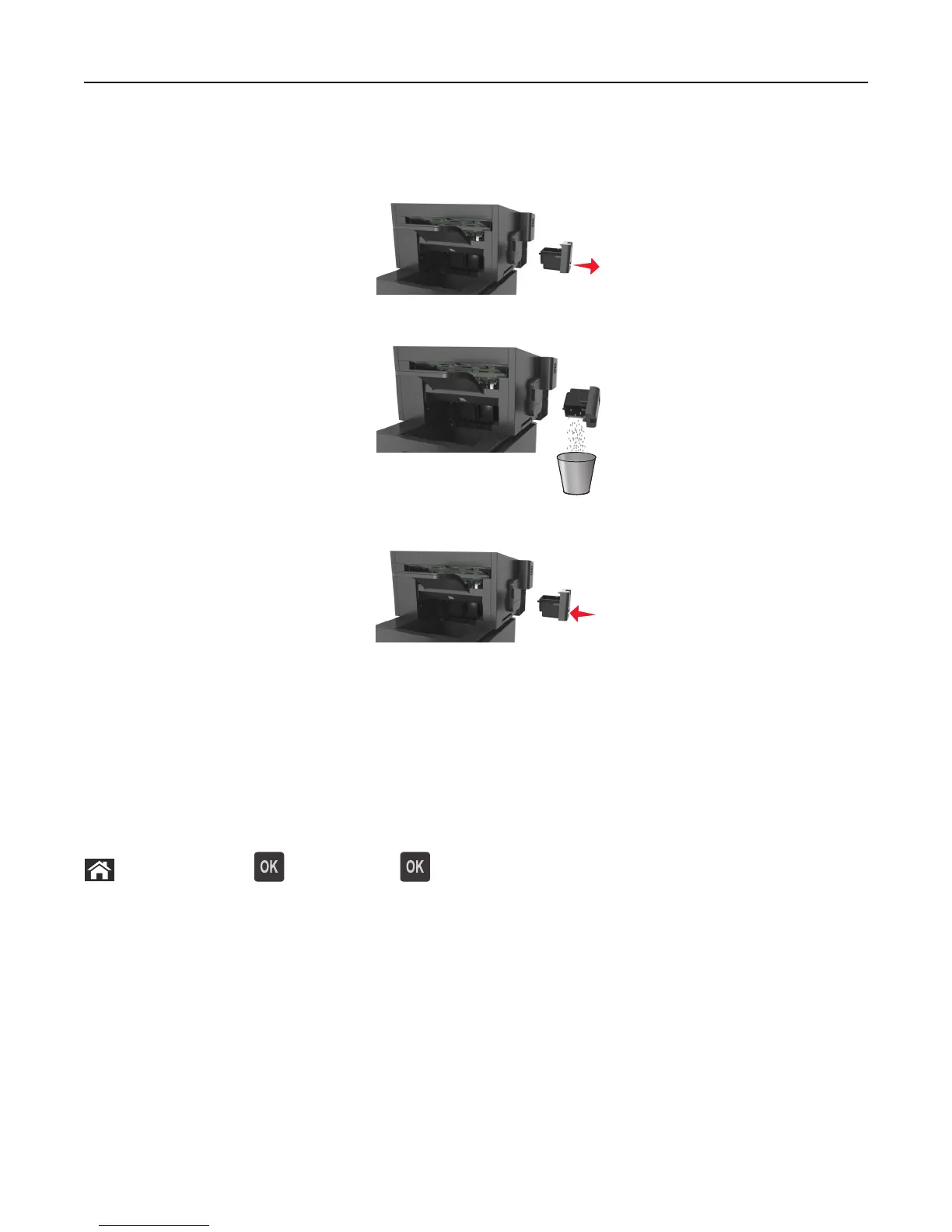 3 Insert the emptied hole punch box back into the finisher until it clicks into place.