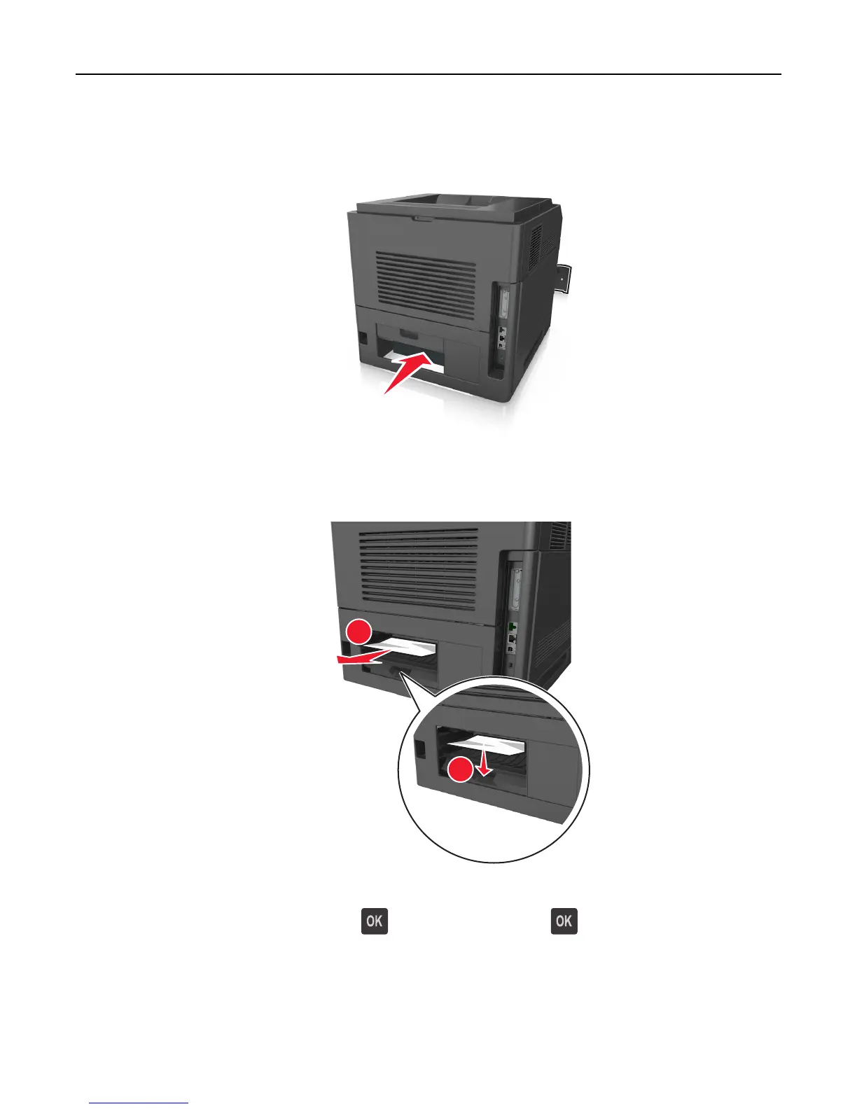 7 From the printer control panel, select Next > > Clear the jam, press OK > to clear the message and continue