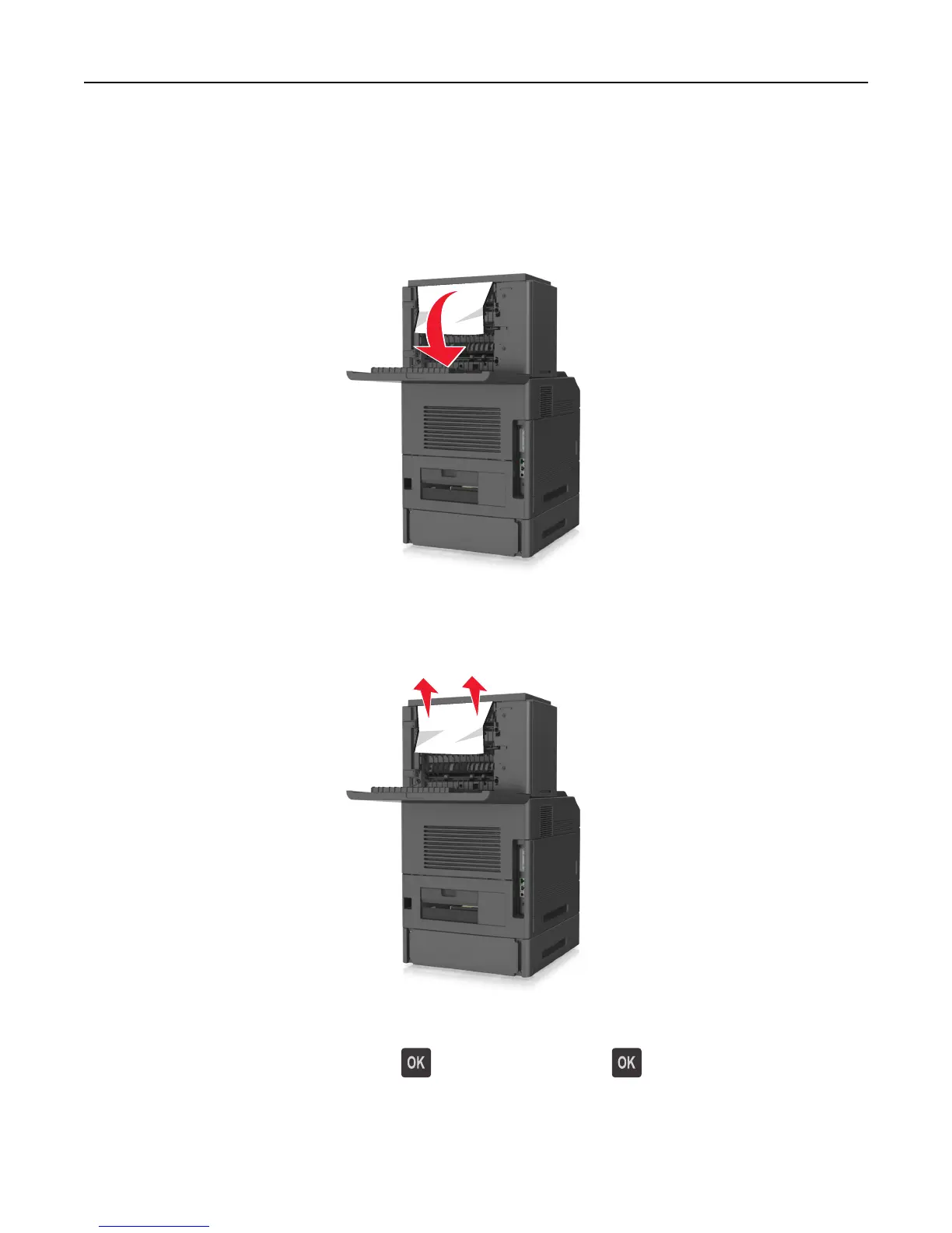 4 From the printer control panel, select Next > > Clear the jam, press OK > to clear the message and continue