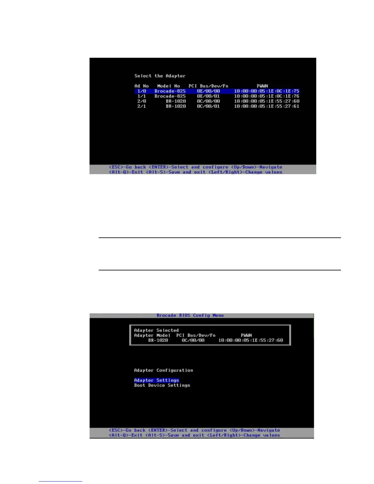 the BIOS Configuration Utility. Select Page Up to go to a previous screen or Page Down to go to