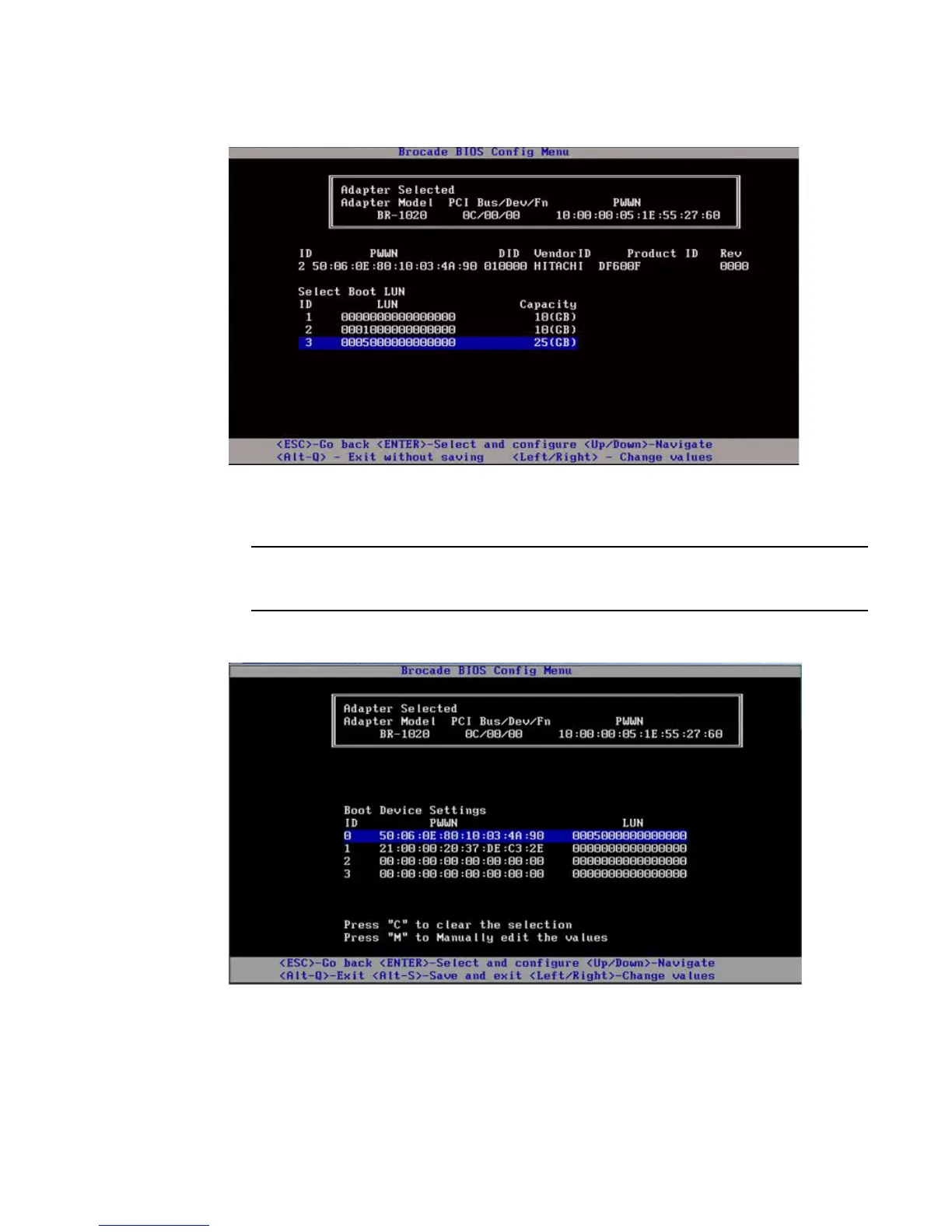 10. Select the LUN on the target device you that want to designate as the boot LUN for the host.
