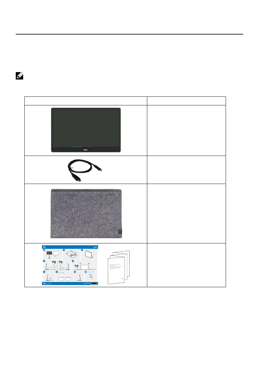 Your monitor ships with the components indicated in the table. Ensure that you have received